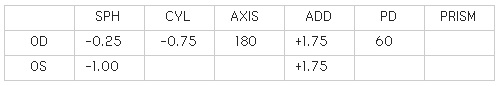 근시, 원시, 난시 모두 표기 단위는 0.25를 기본 단위로 합니다. 숫자가 올라 갈수록 눈이 나쁘다는 것을 말합니다.